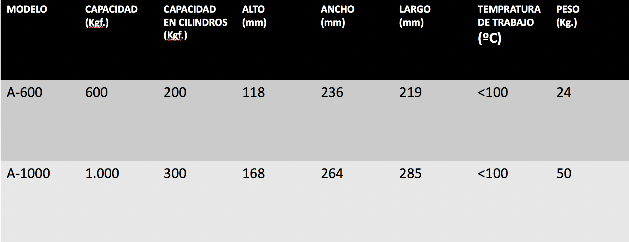 • Capacidad de 100 Kg, 300 Kg, 600 Kg, 1000 kg y 2000 Kg.